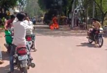 चलती बाइक में लगी आग, देखते ही देखते आग का गोला बनी गाड़ी