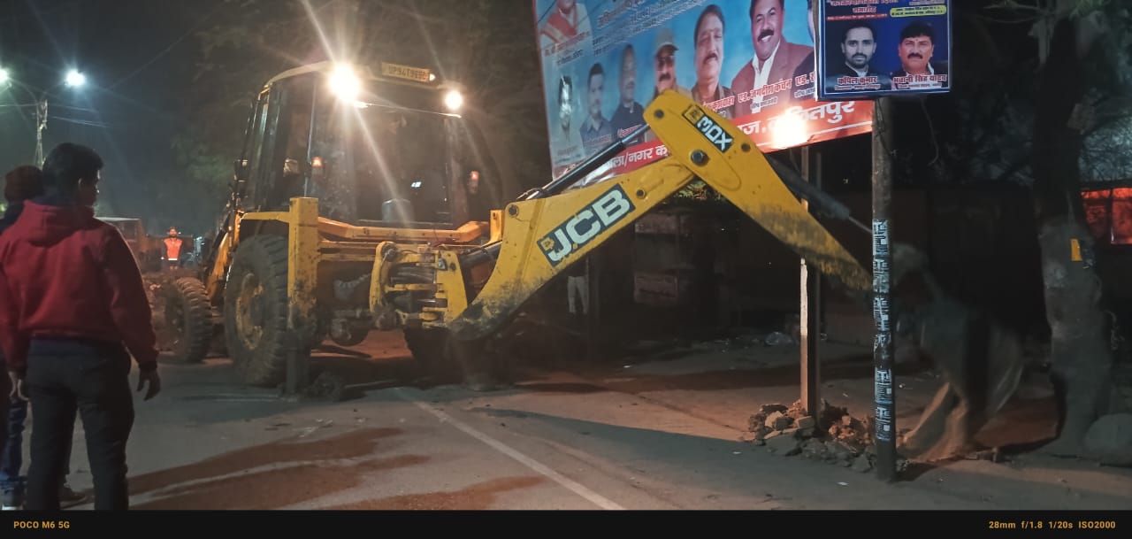 देर रात नगर पालिका के बुल्डोजर ने मचाया शहर में तहलका