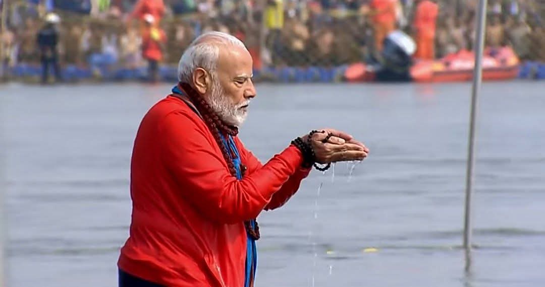 पीएम मोदी ने संगम में लगाई आस्था की डुबकी, सीएम योगी भी साथ में मौजूद