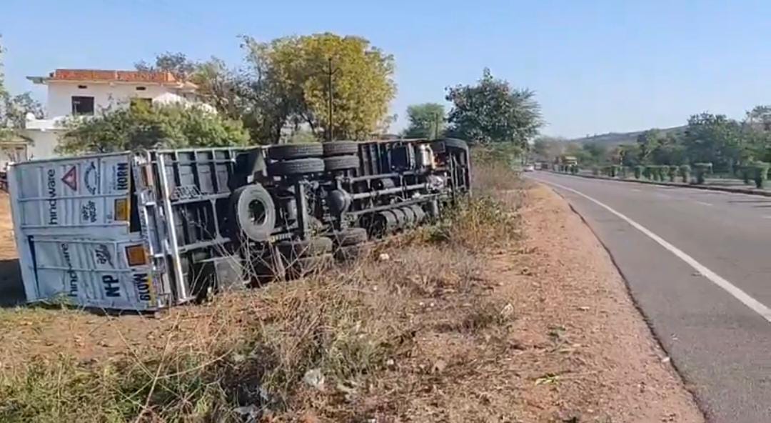 सड़क पर गड्ढों की वजह से दो जगहों पर हुए हादसे, ट्रक अनियंत्रित होकर पलटे