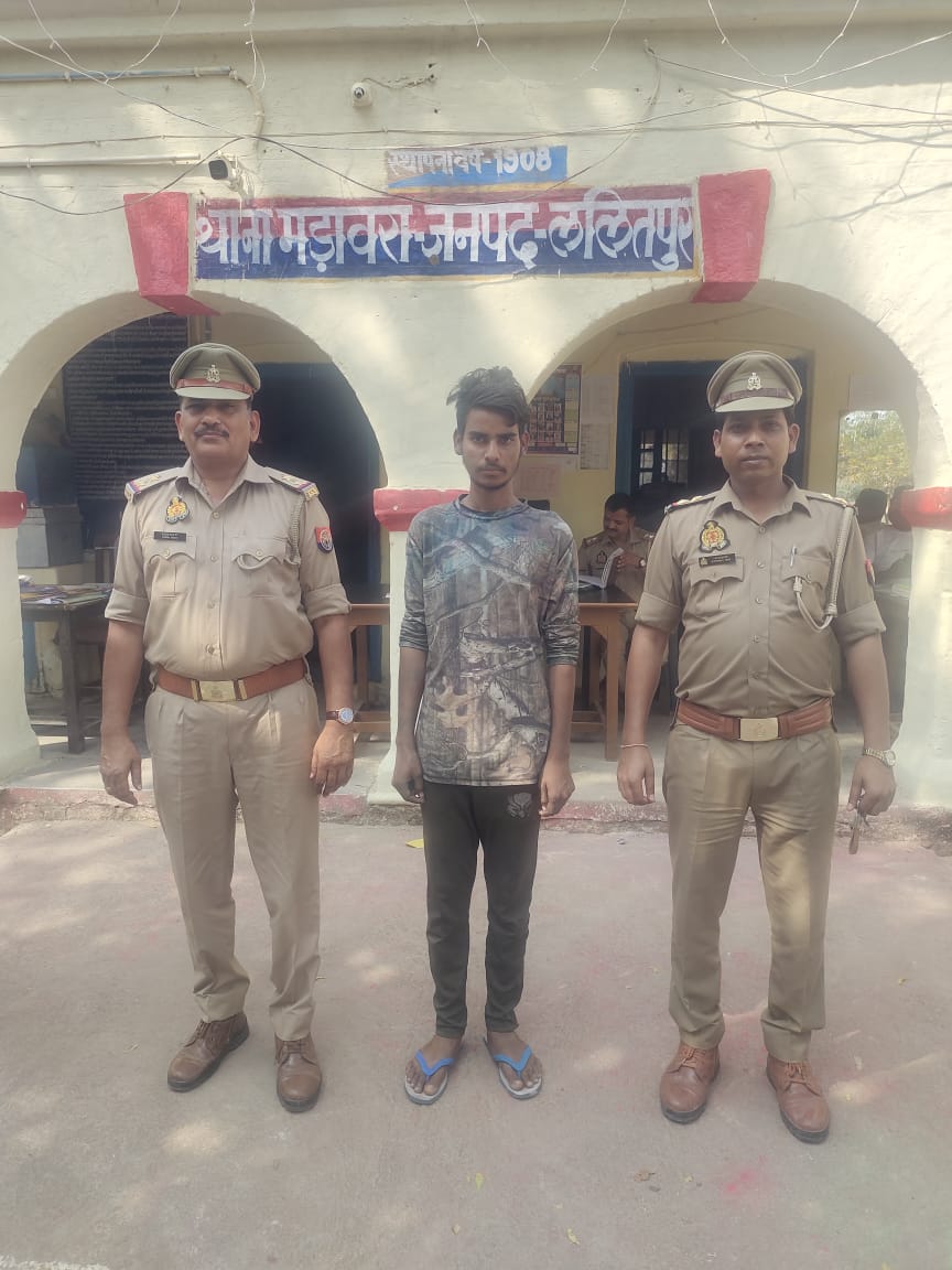 पुलिस अधीक्षक ललितपुर मो0 मुश्ताक के निर्देशन में, अपर पुलिस अधीक्षक ललितपुर अनिल कुमार एवं क्षेत्राधिकारी मड़ावरा राजेश कुमार श्रीवास्तव के निकट पर्यवेक्षण में वांछित अभियुक्तों की गिरफ्तारी हेतु चलाये जा रहे अभियान के क्रम में थाना मड़ावरा पुलिस द्वारा थाना पर पंजीकृत मु0अ0सं0- 61/2025 धारा-74/352/351(2)/351(3) बीएनएस व 7/8 पाक्सो एक्ट में वांछित अभियुक्त 1.संजू पुत्र बारे लाल प्रजापति उम्र करीब 22 वर्ष निवासी ग्राम सौरई थाना मड़ावरा जनपद ललितपुर को गिरफ्तार कर मा0 न्यायालय के समक्ष पेश किया गया ।