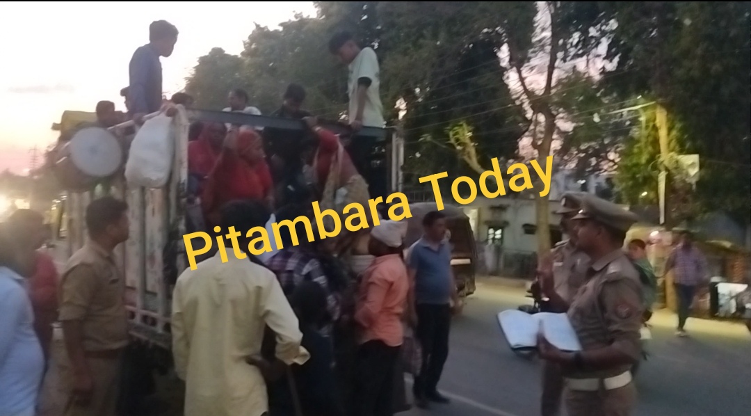 दो पिकअप में आधा सैकड़ा से अधिक सवारी कर रही थी यात्रा, यातायात प्रभारी ने चालकों की लगाई क्लास