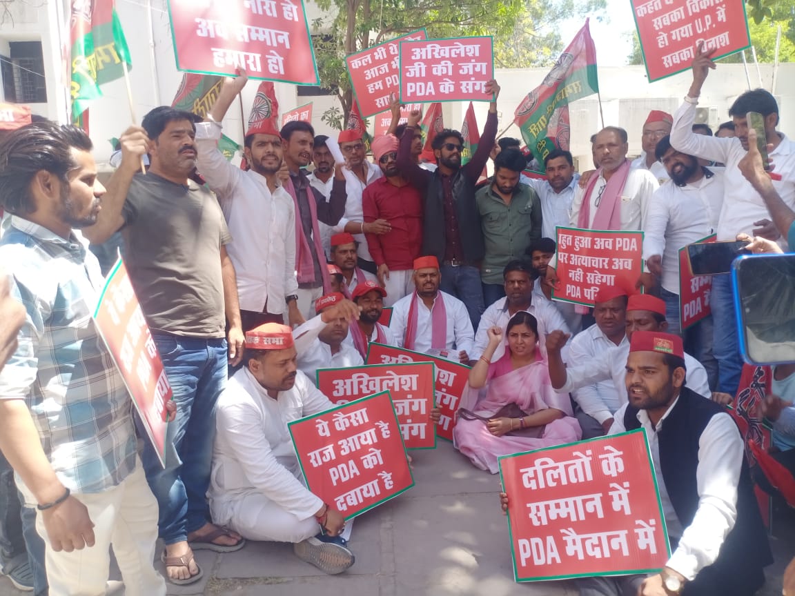 समाजवादियों ने किया प्रदर्शन ,बोले सांसद रामजी लाल सुमन को मिले सुरक्षा