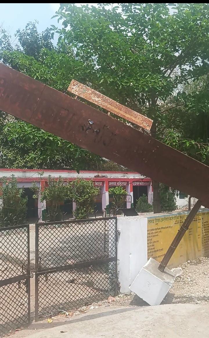 बिरधा: खण्ड शिक्षा अधिकारी के कार्यालय का मुख्य द्वार हवा से ही गिर गया, रविवार होने के कारण बड़ी घटना टली