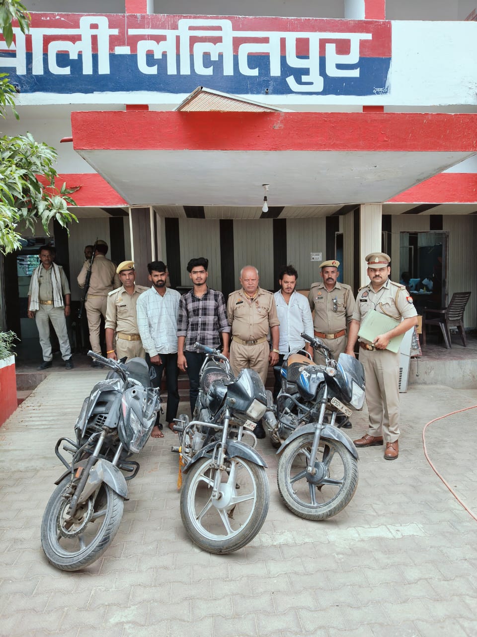 तीन बाइक चोर तीन मोटरसकिल के सहित चोरों को पुलिस ने किया गिरफ्तार।