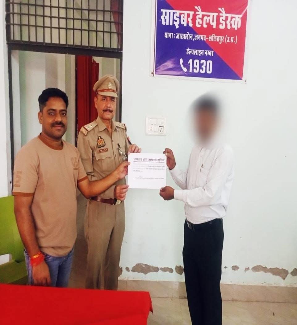अपर पुलिस महानिदेशक, कानपुर जोन आलोक सिंह, एवं पुलिस उपमहानिरीक्षक, झांसी केशव कुमार चौधरी के निर्देशन मे पुलिस अधीक्षक, मो0 मुश्ताक के कुशल नेतृत्व में थाना जाखलौन पुलिस ने साइबर अपराध एवं अपराधियों के विरूद्ध चलाये जा रहे अभियान के क्रम में आवेदक के साथ ₹ 85,000/- रुपये की धनराशि की धोखाधड़ी हुई थी, जिसके सम्बन्ध में ऑनलाईन शिकायत प्राप्त हुई, थाना जाखलौन पुलिस टीम ने पीड़ित द्वारा उपलब्ध कराये गये बैंक स्टेटमेन्ट व अन्य प्रपत्रों का अवलोकन व तकनीकी विश्लेषण कर त्वरित व प्रभावी कार्यवाही करते हुये विभिन्न वित्तीय एजेंसियो/ बैंको/वालेट आदि से सम्पर्क कर, द्वारा उचित माध्यम से संबंधित वित्तीय एजेंसियों को mail करके , पीड़ित का पैसा होल्ड कराकर, पीड़ित की फ्राड हुई सम्पूर्ण धनराशि को नियमानुसार वापस करने में सफलता प्राप्त की है। टीम में-थानाध्यक्ष अभिषेक कुमार सिंह , कम्प्यूटर ऑपरेटर ग्रेड बी, विवेक राज मिश्र, का0 रामजी तिवारी , थाना जाखलौन जनपद ललितपुर का योगदान रहा। यदि किसी व्य