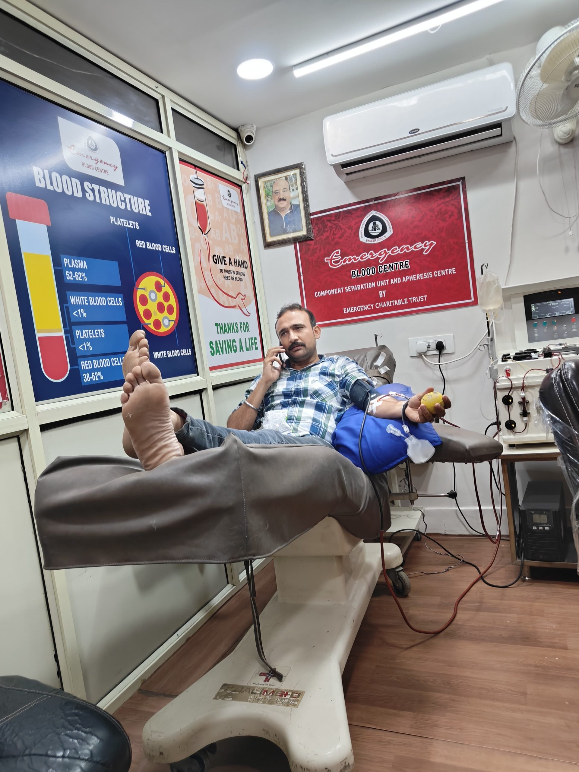 ललितपुर पुलिस में कार्यरत मुख्य आरक्षी जितेंद्र यादव ने दिखाई इंसानियत, झांसी की रहने वाली महिला जो ग्वालियर में भर्ती है गंभीर बीमारी से जूझ रही है , उनको रेयर रक्त ग्रुप बी निगेटिव की आवश्यकता थी, जैसे ही ये खबर जितेन्द्र को मालूम हुई महिला रोगी की जान बचाने के लिए ललितपुर से अपने अधिकारियों से छुट्टी लेकर रक्त प्लेटलेट्स देने ग्वालियर पहुंच गए और रक्तदान कर बचाई महिला रोगी की जान