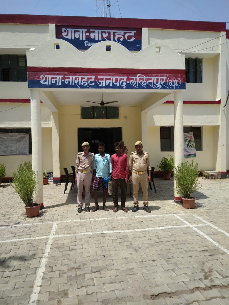 पुलिस अधीक्षक ललितपुर मो0 मुश्ताक के निर्देशन में, अपर पुलिस अधीक्षक जनपद ललितपुर कालू सिंह एवं क्षेत्राधिकारी पाली सुनील कुमार भारद्वाज के निकट पर्यवेक्षण में जनपद में वांछित/वारण्टियों की गिरफ्तारी हेतु चलाये जा रहे अभियान के क्रम में थाना नाराहट पुलिस द्वारा 02 नफर वारण्टी अभियुक्तगण- 1.मुलायम यादव पुत्र काशीराम उम्र करीब 36 वर्ष निवासी ग्राम गुढा पडरिया थाना नाराहट जनपद ललितपुर सम्बन्धित केश नं0 4138/2020 धारा 41/411/413 भादवि थाना नाराहट जनपद ललितपुर 2. लक्ष्मी उर्फ लक्ष्मीनारायण पुत्र कडोरे उम्र करीब 32 वर्ष निवासी ग्राम झरावटा थाना नाराहट जनपद ललितपुर सम्बन्धित मु0नं0 3829/2008 धारा 452/323/504/506 भादवि थाना नाराहट जनपद ललितपुर को नियमानुसार गिरफ्तार किया गया । गिरफ्तारशुदा अभियुक्तगण को मा0 न्यायालय के समक्ष पेश किया जा रहा है ।