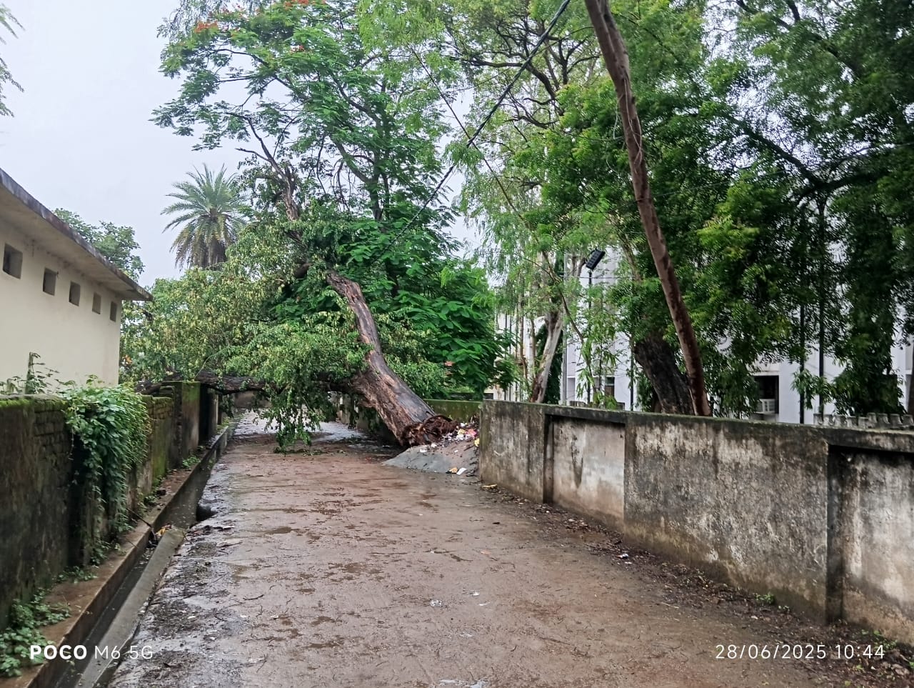 विकास भवन मार्ग से उप कृषि निदेशक मार्ग पर भारी भरकम पेड़ टूटकर गिरा, आवागमन बाधित