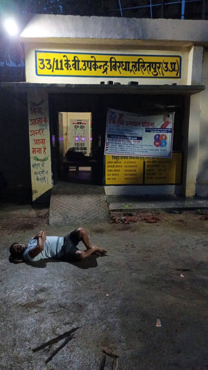 पिछले चार दिन से लाइट न आने के कारण बिरधा पावर हाउस पर रात 2 बजे धरने पर बैठा युवक
