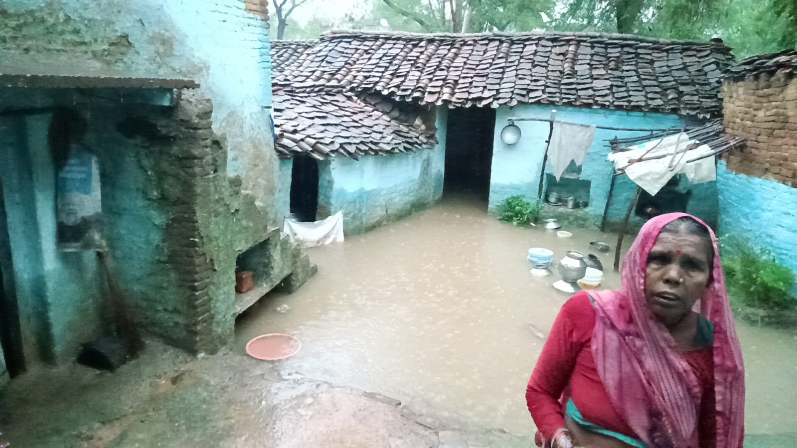 पूरी रात से हो रही लगातार बारिश के कारण महरोनी अंतर्गत ग्राम पड़वा की हरदौल मुहल्ले की हरिजन बस्ती के एक दर्जन घर पानी में डूबने लगे है, घरों में पानी भर गया जिससे कच्चे मकान गिरने लगे, हीरा अहिरवार का मकान गिर गया है व दूसरा घर चारो तरफ से पानी से घिर गया है उसी में बच्चे व परिजन लेटे है।