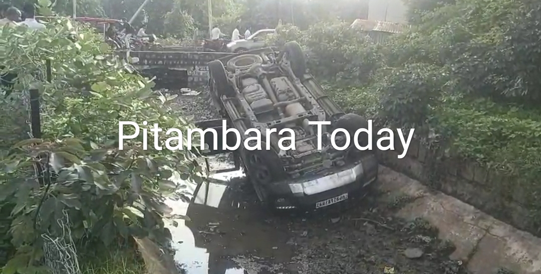 स्कॉर्पियो गाड़ी इतनी तेज थी की नहर में जा गीरी और चारों पहिए ऊपर हो गयें