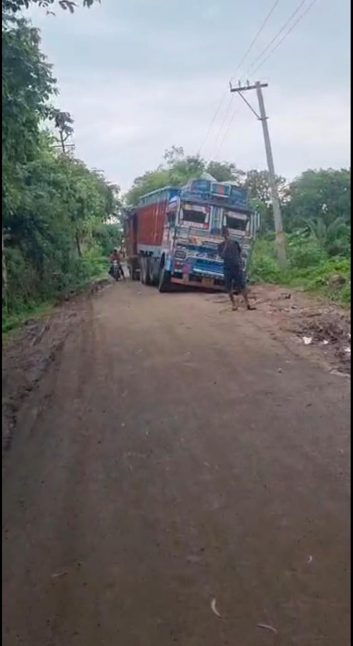 बच्चा जेल जाने वाले मार्ग पर ट्रक और लोडिंग टैक्सी फंसने से रास्ता बंद