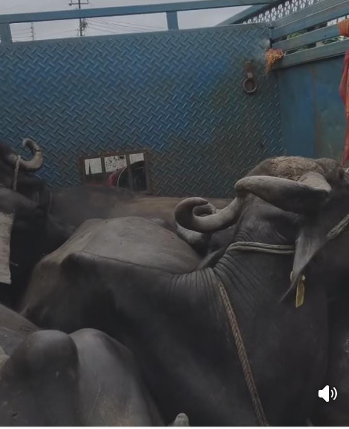 यातायात पुलिस ने मवेशियों से भरी पिकअप, कूदकर भागा चालक