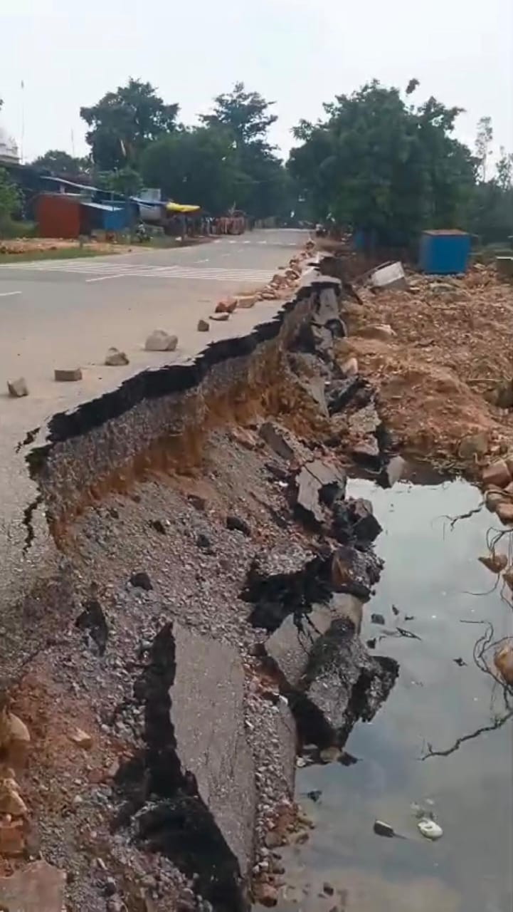 तेज़ बारिश से सड़क क्षतिग्रस्त हुई