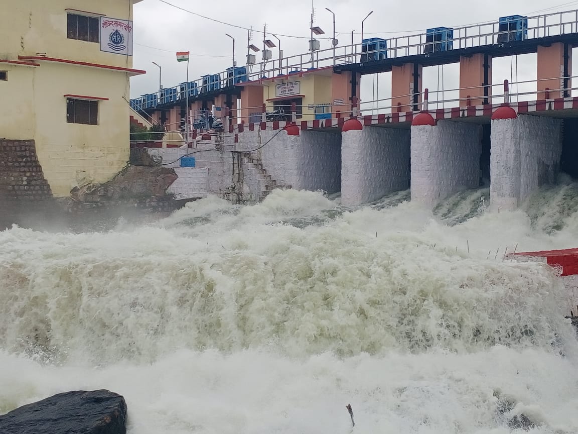 गोविंद सागर बांध के 8 गेट खोलकर छोड़ा जा रहा 4176 क्यूसेक पानी