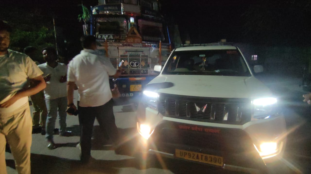 ट्रक ने खण्ड विकास अधिकारी की कार को मारी टक्कर, कार क्षतिग्रस्त