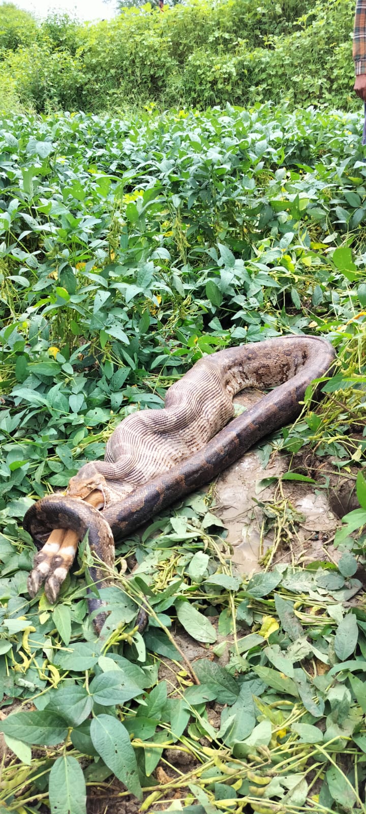 नहर के पास सोयाबीन के खेत में विशालकाय अजगर ने गाय के बछड़े को निगला,मचा ह्ड़कंप