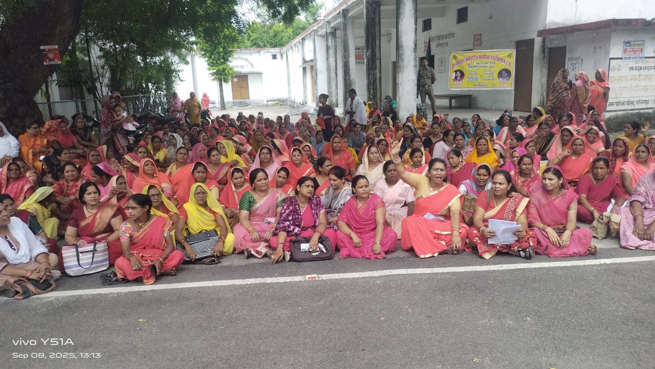 आठ सूत्रीय मांगों को लेकर आंगनवाड़ी कार्यकत्रियों का धरना प्रदर्शन