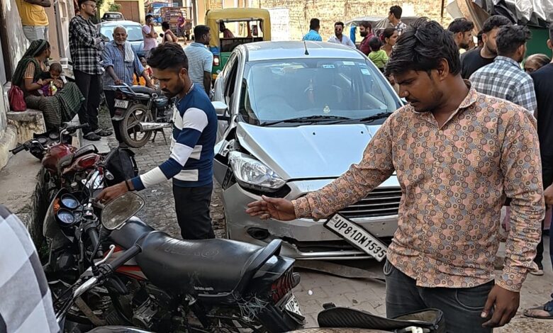 तालाबपुरा में अनियंत्रित कार, आधा दर्जन मोटरसाइकिल से टकराई, युवक हुआ घायल