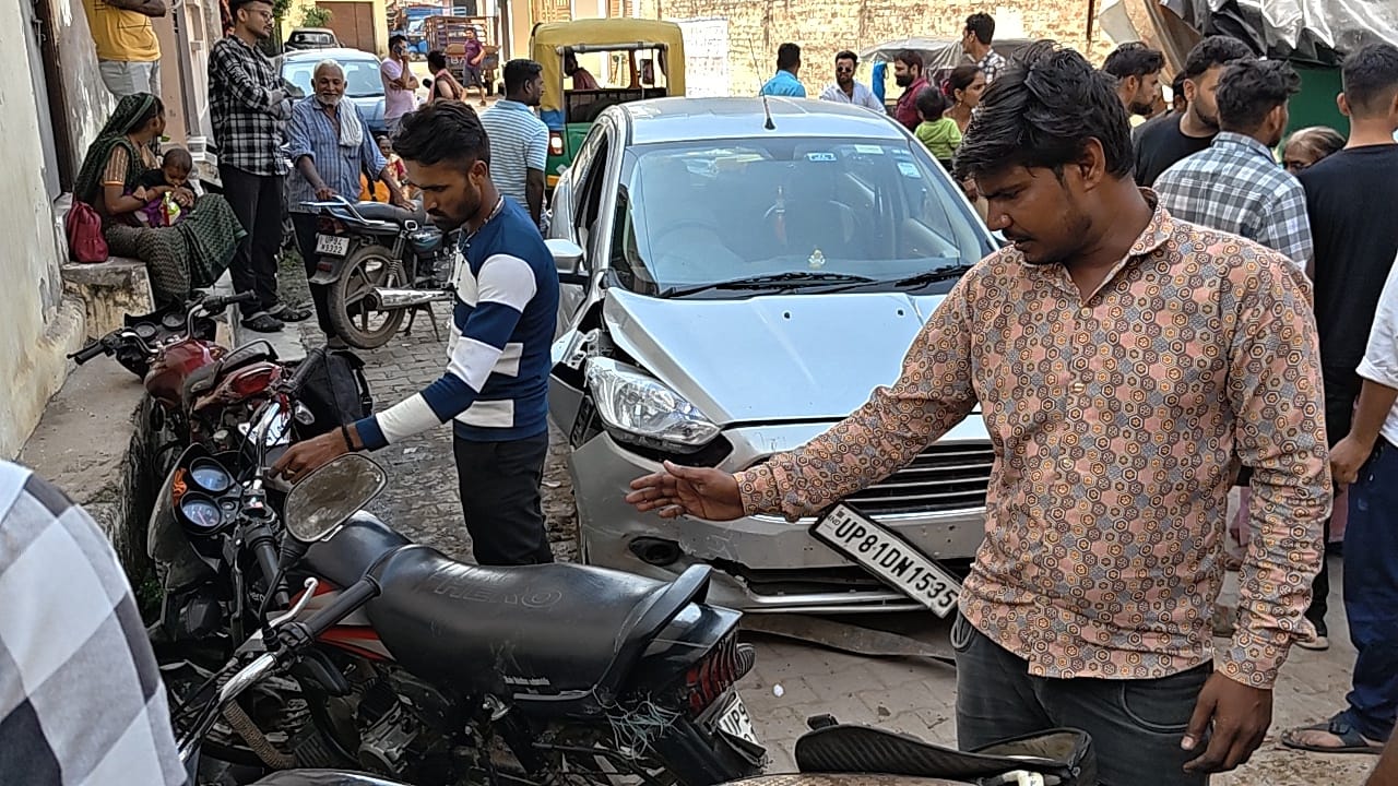 तालाबपुरा में अनियंत्रित कार, आधा दर्जन मोटरसाइकिल से टकराई, युवक हुआ घायल