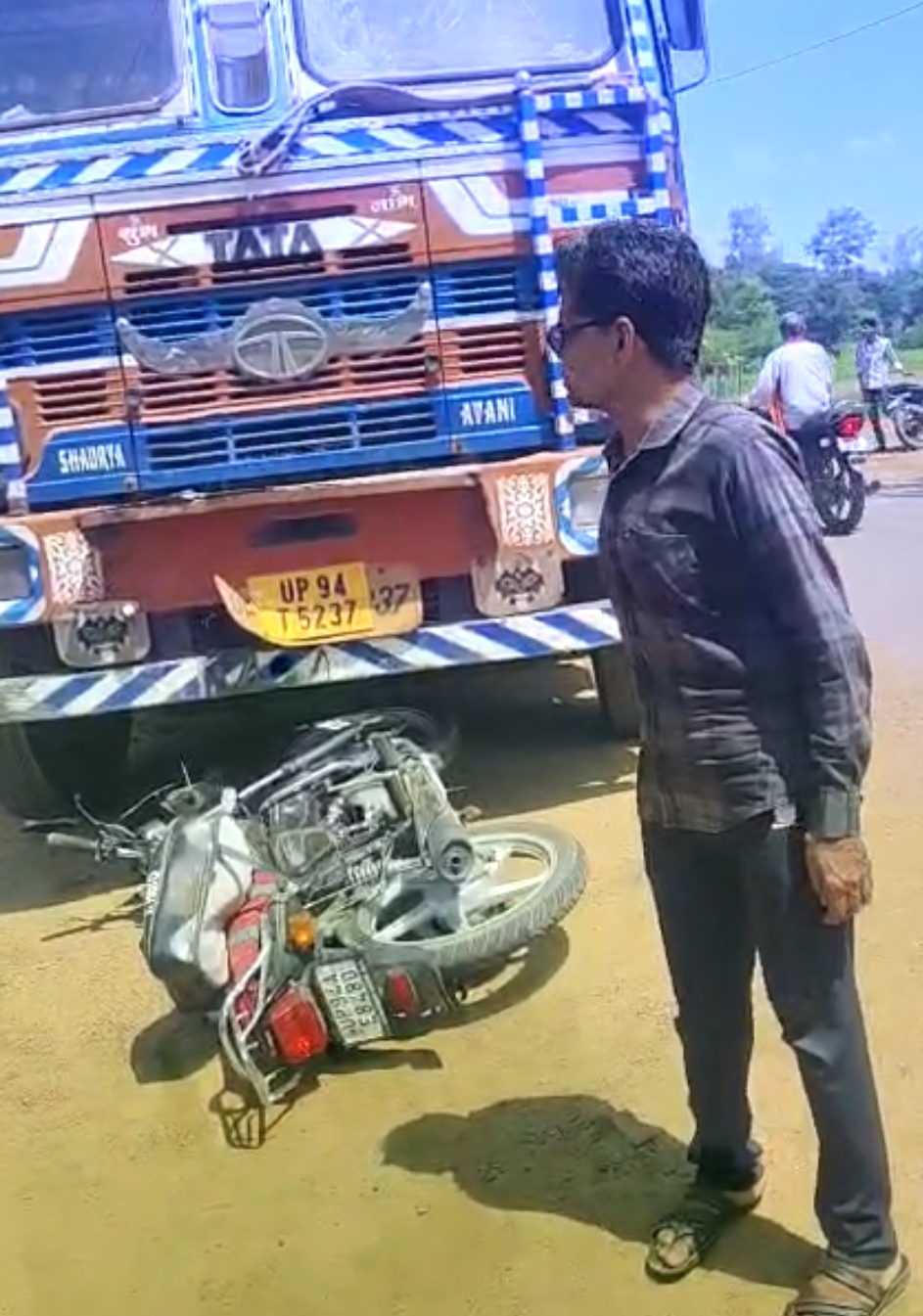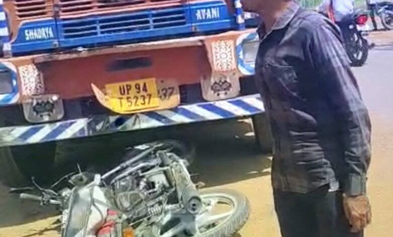 ट्रक की चपेट में आई बाइक, महिला की मौत, युवक और युवती घायल