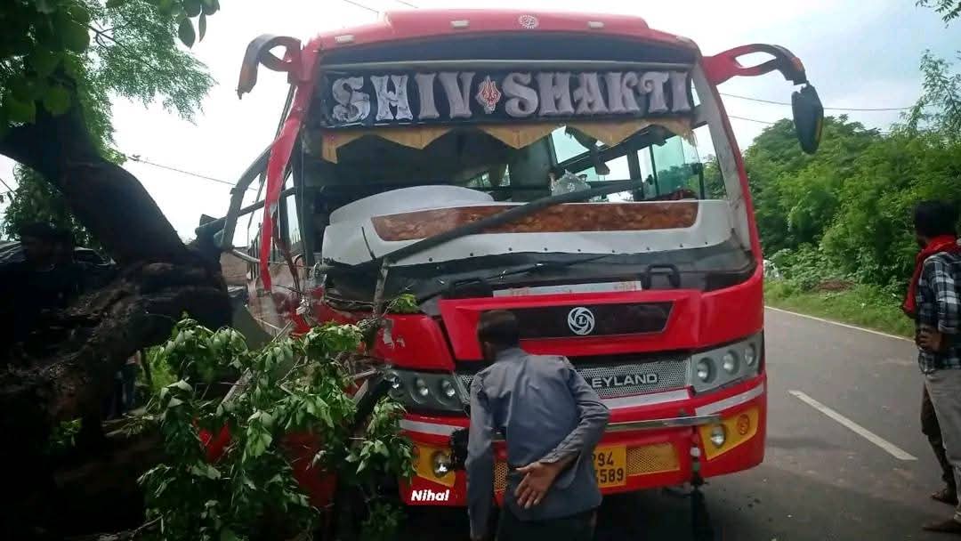 बस बाइक में जोरदार टक्कर, बाइक सवार तीन युवक घायल