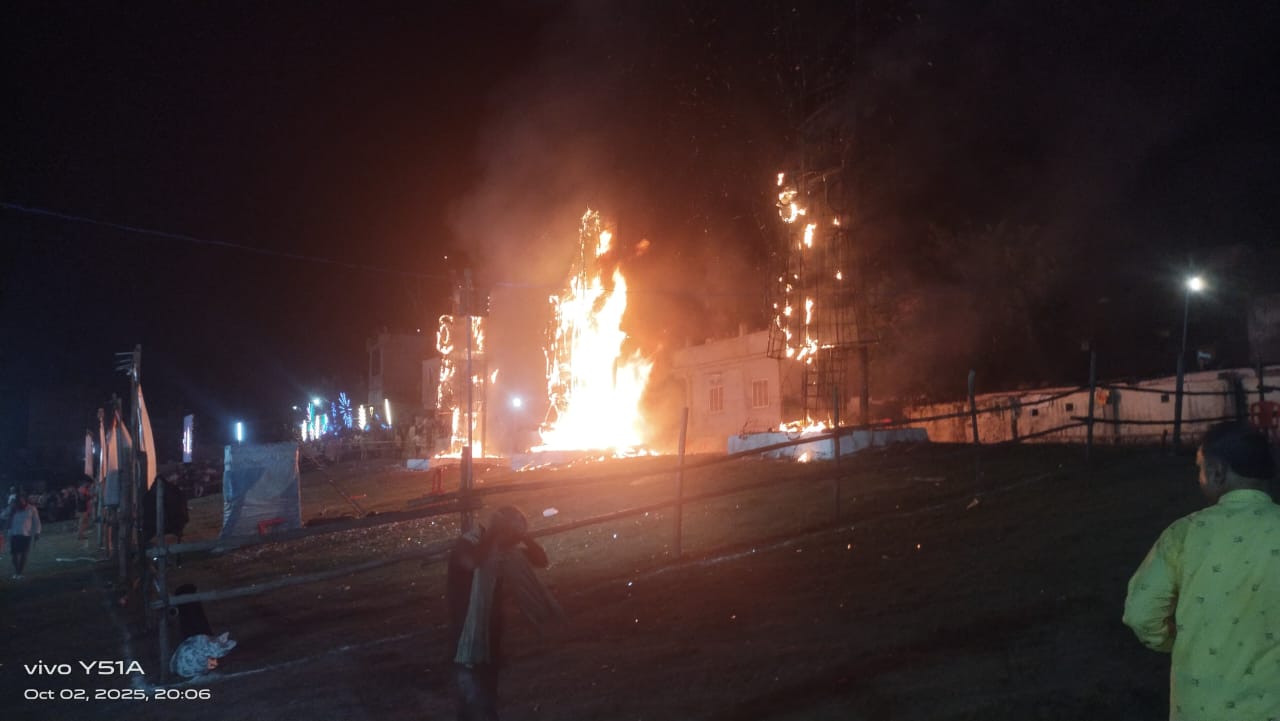 ललितपुर के सबसे लंबे 51 फिट के रावण पुतले का दहन, मंत्री विधायक सहित 5 हजार से अधिक लोग पहुंचे रावण दहन देखने