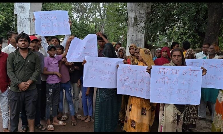 अवैध शराब की बिक्री बंद करने के लिए ग्रामीणों ने किया प्रदर्शन