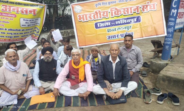 ललितपुर । जाखलौन पम्प कैनाल नहर माईनर लागौन का रोस्टर परिवर्तन कर ग्राम बनौली, खुरा, जैरवारा, बुचा, विरोरा , रखपंचमपुर देलवारा ,अमरपुर में माईनर से पानी पहुंचाए जाने मांग को लेकर भारतीय किसान संघ के नेतृत्व में अनेक किसान कलेक्ट्रेट परिसर के बाहर धरने पर बैठ गए है ।