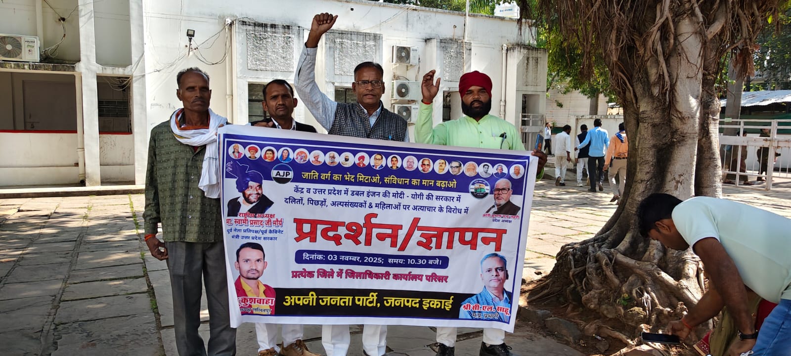 ललितपुर। जनपद में आज कलेक्ट्रेट परिसर में अपनी जनता पार्टी की जनता अधिकारी द्वारा जनपद में हो रहे जमीनों पर कब्जे,किसानों की उर्वरक समस्या एवं फसलों के हुए नुकसान के विरोध में एक ज्ञापन अपनी जनता पार्टी द्वारा दिया गया जिसमें पार्टी के चला अध्यक्ष सहित कई कार्यकर्ता शामिल हुए।