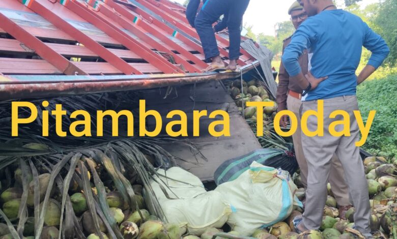 नारियल से भरा ट्रक पलटा,नारियल के साथ फैला गांजा, नारियल की आड़ में हो रही थी गांजे की तस्करी