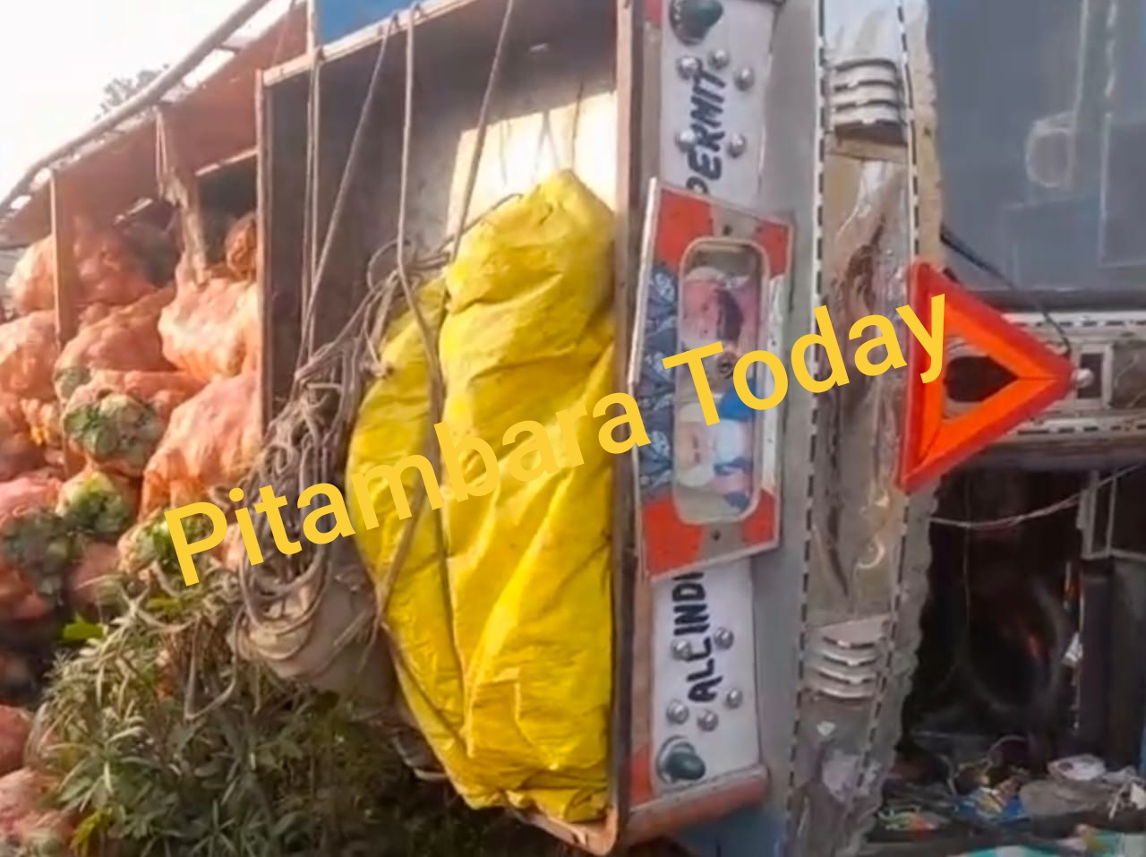 कंटेनर की टक्कर से गोभी से भरा ट्रक पलटा