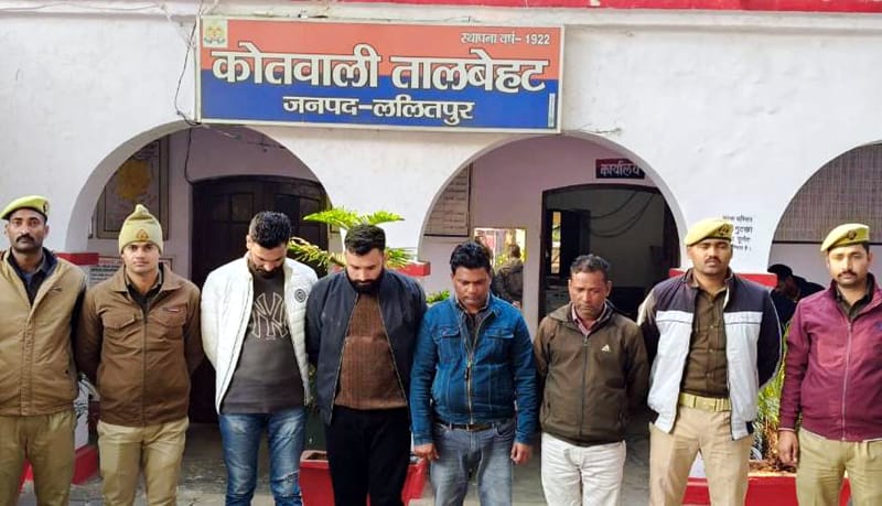 अपर पुलिस महानिदेशक कानपुर जोन, डीआईजी परिक्षेत्र झांसी के निर्देशानुक्रम में, पुलिस अधीक्षक ललितपुर मो.मुश्ताक के निर्देशन, एएसपी कालू सिंह एवं सीओ तालबेहट रक्षपाल सिंह के निकट पर्यवेक्षण में प्रभारी निरीक्षक मनोज मिश्रा ने अपनी टीम के साथ थाने में दर्ज मु.अ.सं. 06/2026 धारा 111, 318(4), 61(2), 338, 352, 351(3), 336(3), 340(2) बीएनएस के अभियोग में वांछित सिविल लाइन चांदमारी निवासी भरत वर्मा पुत्र स्व.जगदीश वर्मा, मड़ावरा निवासी मुकेश कुमार जैन पुत्र स्व.भागचंद्र जैन, मोहल्ला रामनगर लेखपाल कालोनी व हाल 20 ग्रीतग्रीन कॉलोनी करौंद थाना निशातपुरा जिला भोपाल म.प्र. निवासी रविशंकर उर्फ रवि तिवारी पुत्र तिलक राम तिवारी, उसका भाई विनोद कुमार तिवारी उर्फ रानू पुत्र तिलक राम तिवारी को धर दबोचा है। घटना को लेकर तालबेहट पुलिस ने बताया कि संगठित गिरोह बनाकर अपने आर्थिक लाभ के लिये एलयूसीसी नाम की एक चिटफंड कम्पनी के माध्यम से धोखाधड़ी कर षड्यन्त्र पूर्वक कूटरचित दस्तावेज तैयार करते हुये पीडि़त के रुपये लेकर हड़प लेना एवं पीडि़त द्वारा अपना रुपया वापस मांगने पर टाल-मटोल करते हुये गाली-गलौच करना तथा जान से मारने की धमकी देने के सम्बन्ध में सूचना दी गयी थी। सूचना के आधार पर थाना तालबेहट पर सुसंगत धाराओं में अभियोग पंजीकृत कर प्रकरण की गंभीरता व व्यापकता को देखते हुए पुलिस अधीक्षक मो. मुश्ताक ने गुणवत्तापूर्ण विवेचनात्मक कार्यवाही व वैज्ञानिक साक्ष्य संकलन हेतु टीमें गठित की गयीं थी। गठित टीमों द्वारा सर्विलांस (मैनुअली/टैक्नीकल), वैज्ञानिक साक्ष्य संकलन व अन्य एकत्रित साक्ष्यों की मदद से 04 अभियुक्तगण को नियमानुसार गिरफ्तार किया गया है।