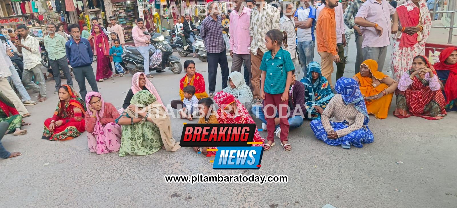 तेज रफ्तार बस की चपेट में आने से तीन बाइक सवारों की मौत के बाद परिवारजनों ने घंटाघर पर लगाया जाम
