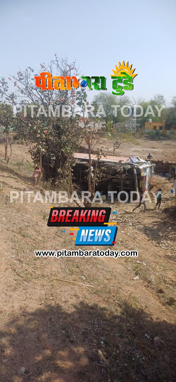 तेज रफ्तार ट्रक अनियंत्रित होकर हाईवे के पास जा पलटा, चालक व कंडक्टर घायल