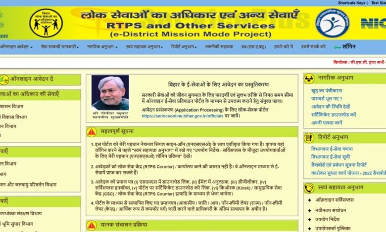 RTPS बिहार ऑनलाइन जाति, आय, निवास प्रमाण पत्र आवेदन | लॉगिन, स्थिति जांच, प्रमाण पत्र डाउनलोड