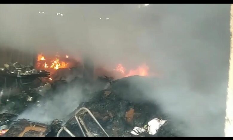 प्लास्टिक गोदाम में भीषण आग, लाखों का सामान जलकर खाक