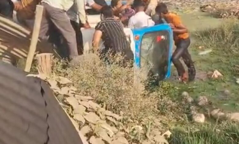 यातायात नियमों की धज्जियां उड़ाते हुए यात्रियों से ठसा ठस भरा एक ऑटो नदी में पलटा