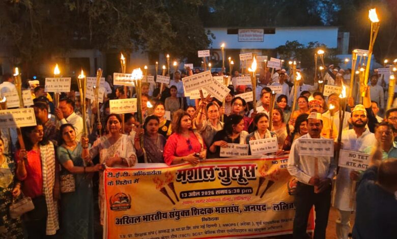 ललितपुर में टीईटी कानून के विरोध में शिक्षकों ने मशाल जुलूस निकाला