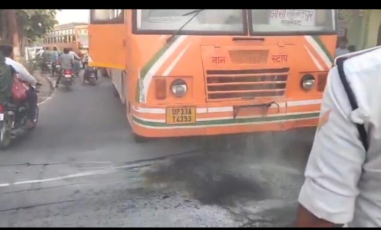 सवारियों से भरी परिवहन की बस में लगी आग