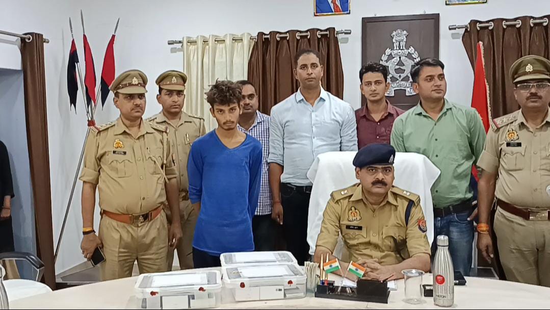 शुक्रवार को दोपहर में पुलिस लाइन सभागार में प्रेसवार्ता के दौरान मोबाइल चोरी का खुलासा करते हुए अपर पुलिस अधीक्षक ने बताया कि कोतवाली सदर क्षेत्र के मोहल्ला सिविल लाइन निवासी प्रकाश कुमार द्वारा रिपोर्ट दर्ज कराते हुए बताया था कि 9 सितम्बर की रात्रि अज्ञात चोरों ने उसकी स्टेशन रोड़ स्थित कृष्णा टॉकीज के सामने मोबाइल की दुकान के ताले तोडक़र दुकान से 15 मोबाइल व 35 हजार रूपए नगदी अज्ञात चोरों द्वारा चोरी कर लेने का मामला दर्ज कराया गया था। चोरी के खुलासे के लिए पुलिस अधीक्षक द्वारा स्वाट टीम व कोतवाली पुलिस को लगाया गया था। पुलिस मोबाइल चोरों को खोजने के लिए लगी हुई थी, तभी शुक्रवार को सुबह के समय पुलिस टीम राष्ट्री राजमार्ग-44 के निकट अमरपुर नवीन गल्ला मण्डी के सामने गश्त कर रही थी, तभी उन्हें मुखबिर से सूचना मिली कि कुछ लोग मण्डी के सामने स्थित खण्डर पड़े ढाबे के पास छिपे हुए है। पुलिस ने घेराबंदी कर वहां मौजूद 2 नाबालिग बच्चों को धर दबोचा, उनके पास से तलाशी ली गई तो 15 मोबाइल, एक लेपटॉप व 15 हजार रूपए नगद बरामद किये गये। पकड़े गये युवक ने अपना नाम मध्य प्रदेश के टीकमगढ़ नगर के मोहल्ला तालदरवाजा निवासी ओम विश्वकर्मा पुत्र मनोज विश्वकर्मा बताया, उसने बताया कि उसने पकड़े गये नाबालिग बच्चों के साथ मोबाइल की दुकान के ताले तोडक़र चोरी की थी, पुलिस ने पकड़े गये आरोपियों को न्यायालय में पेश किया। पूछताछ में पकड़े गये मुख्य आरोपी ओमप्रकाश ने बताया कि उनका एक संगठित गिरोह है और वह अलग अलग राज्यों में चोरी की घटना को अंजाम देते है वह दिन में रेकी करती है रात में घरों या दुकानों में चोरी कर लेते है, उस सामान को बेचकर जो पैसा मिलता है उसे आपस में बांट लेते है। आरोपी को पकडऩे वाली टीम में शहर कोतवाली रमेशचन्द्र मिश्रा, स्वाट टीम के उप निरीक्षक अतुल तिवारी व सर्विलांस प्रभारी मौजूद रहे।