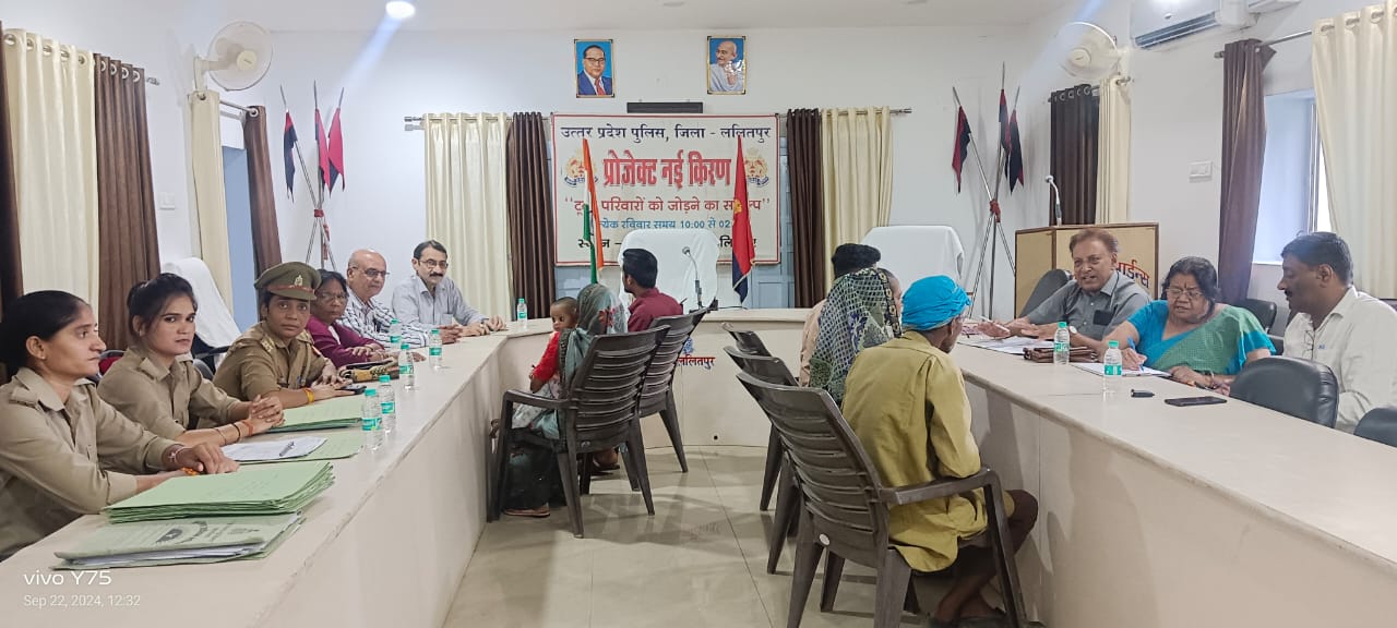 ललितपुर। पुलिस लाइन्स सभागार में एसपी के निर्देशन में तथा प्रतिसार निरीक्षक की उपस्थिति में प्रोजेक्ट नई किरण का आयोजन किया गया। प्रोजेक्ट में सदस्यों द्वारा समझाने के बाद दो परिवार में आपसी सुलह के आधार पर समझौता कराया गया। दोनों परिवार खुशी-खुशी साथ-साथ रहने को तैयार हो गये। वहीं सात मामलों में अग्रिम तिथि दी गई। नई किरण प्रोजेक्ट से जनपद में बिखरे हुए परिवारों को जोडकर उनके दाम्पत्य जीवन में एक नई रोशनी आयेगी। नई किरण प्रोजेक्ट के अन्तर्गत बिखरे परिवार को एक सूत्र में बांधने का प्रयास है। इस दौरान अजय बरया, डा.सुभाष जैन, डा.एस.पी.पाठक, डा.जनक किशोरी शर्मा, सुधा कुशवाहा, थानाध्यक्ष महिला थाना स्वाति शुक्ला, महिला आरक्षी दीपिका, महिला आरक्षी नीलम, महिला आरक्षी पूजा चौधरी आदि का विशेष सहयोग रहा।