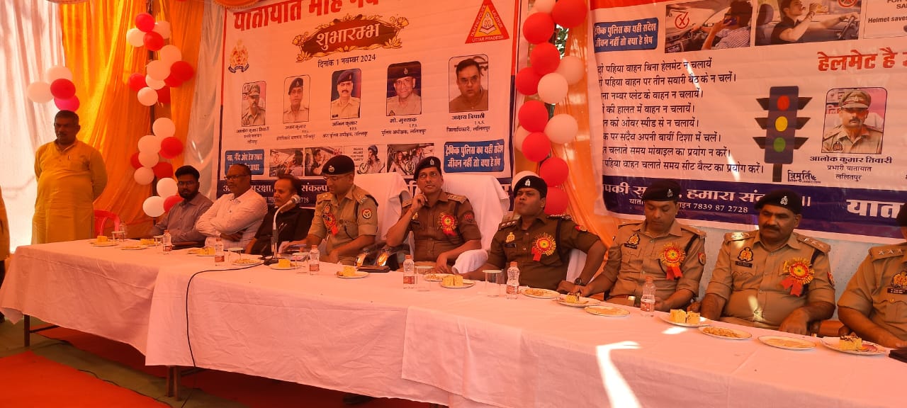 ललितपुर यातायात माह का हुआ शुभारंभ आज घंटाघर परिसर पर कार्यक्रम सम्पन्न हुआ पुलिस अधीक्षक, अध्यक्षता के नेतृत्व में का किया गया शुभारंभ,कार्यक्रम में जिले के अधिकारी मौजूद रहे।