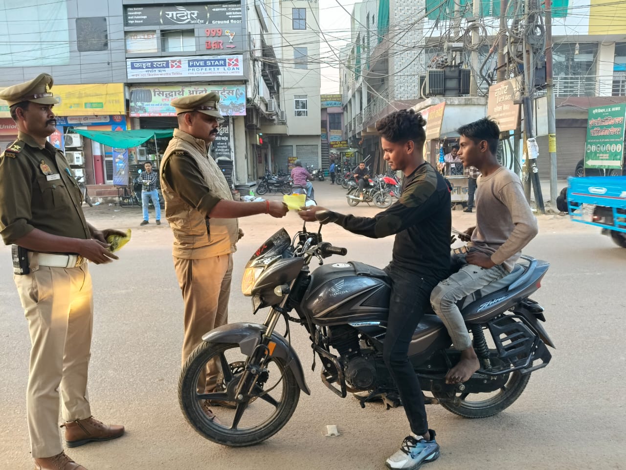 यातायात पुलिस द्वारा शहर के प्रमुख चौराहों पर चलाया गया जागरूकता अभियान