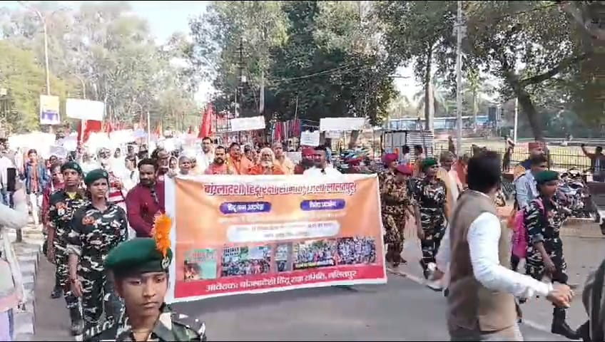 साधु संतों की अगुवाई में सभी हिंदू संगठनों ने बांग्लादेश के अत्याचारों को लेकर सड़कों पर किया प्रदर्शन